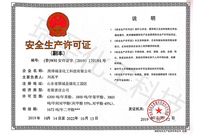 菏澤瑞圣化工科技有限公司是國內(nèi)酚類產(chǎn)品的生產(chǎn)企業(yè)。公司現(xiàn)有年加工粗酚20000萬噸的生產(chǎn)裝置及能力,可生產(chǎn)苯酚、鄰甲酚、間對(duì)甲酚、二甲酚等產(chǎn)品。產(chǎn)品廣泛應(yīng)用于合成樹脂、香料、染料、絕緣材料、阻燃劑、農(nóng)藥、醫(yī)藥、中間體等精細(xì)化工領(lǐng)域。本公司以誠為本,信譽(yù)保證,靠過硬的產(chǎn)品質(zhì)量和完善的服務(wù)贏得了國內(nèi)外廣大用戶的贊譽(yù)。產(chǎn)品暢銷國內(nèi)二十多個(gè)省市地區(qū),并地打入了國際市場(chǎng),產(chǎn)品遠(yuǎn)銷意大利、巴西、印度、韓國、日本、臺(tái)灣等國家和地區(qū)。